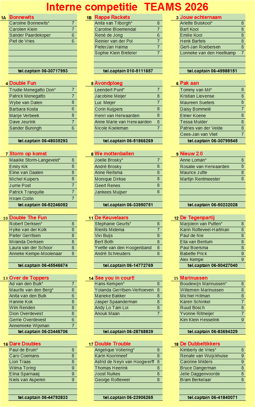 Home opzet competitie Inschrijfformulier Taken captains Invallers De Teams Poule uitslagen laatste speelronde baanverdeling Eindstand